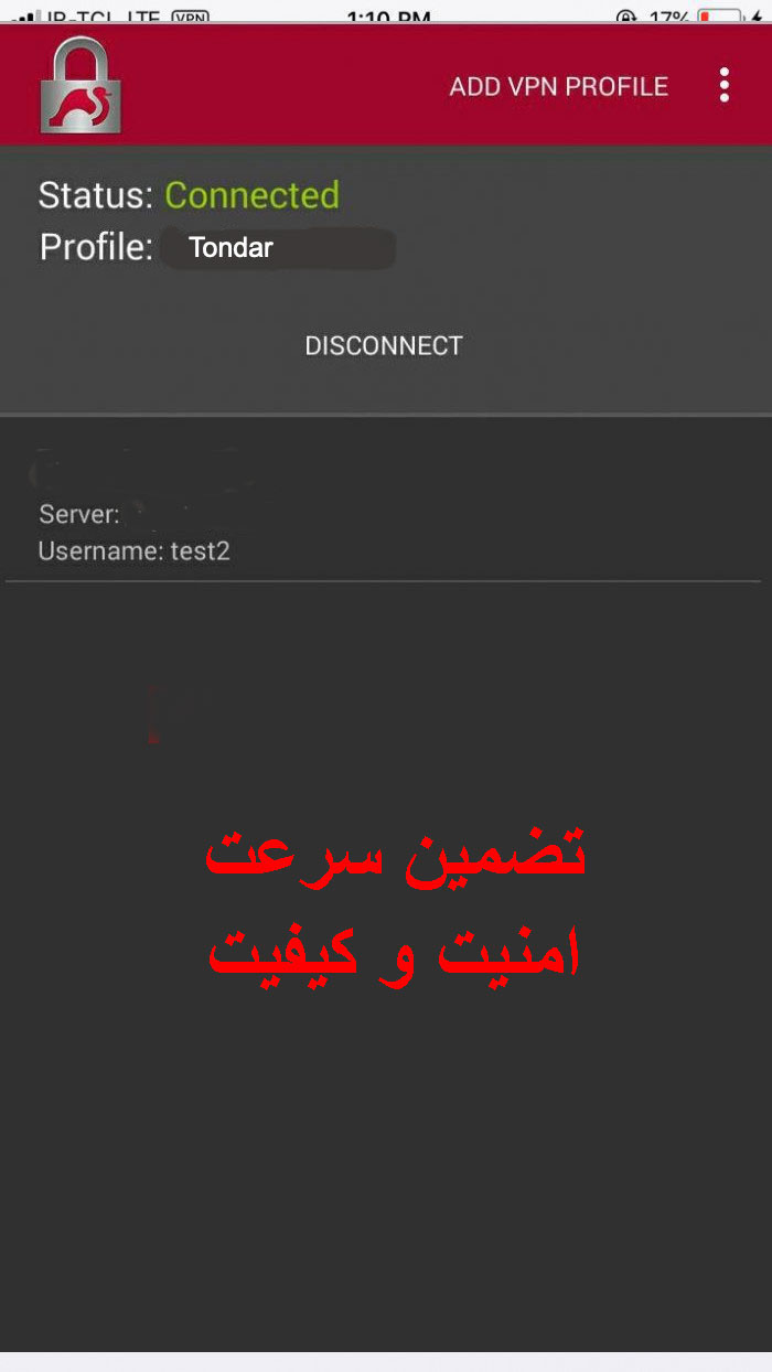 6- اگر همه تنظیمات درست باشد و محدودیت از طرف شرکت ارائه دهنده شما بر روی این سرویس اعمال نشده باشد، بعداز چند ثانیه شما به سرویس وصل خواهید شد.