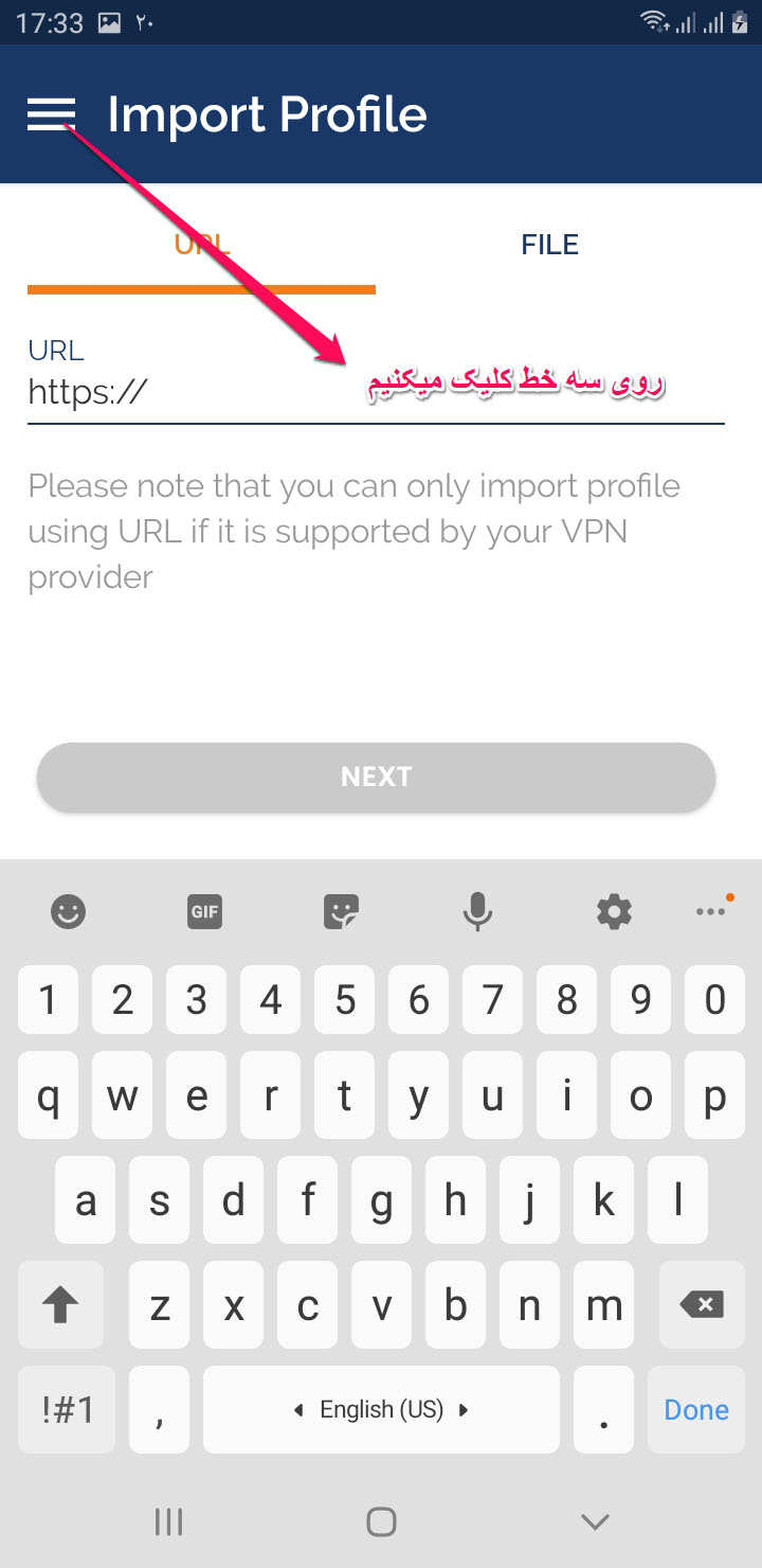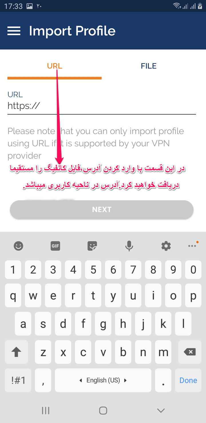5- در تب URL میتوانیم آدرس فایل کانفیگ را وارد کنیم و فایل کانفیگ را مستقیما