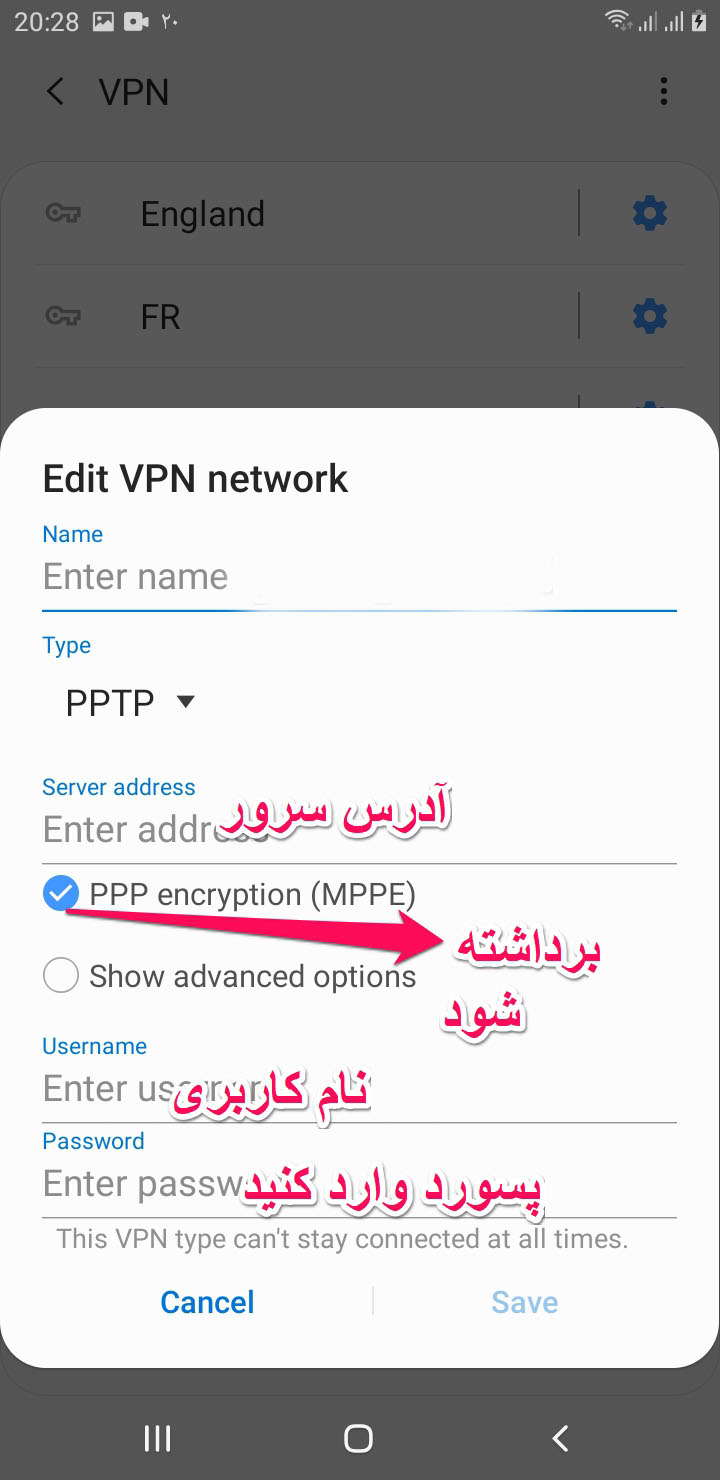 آموزش استفاده از سرویس PPTP در اندروید