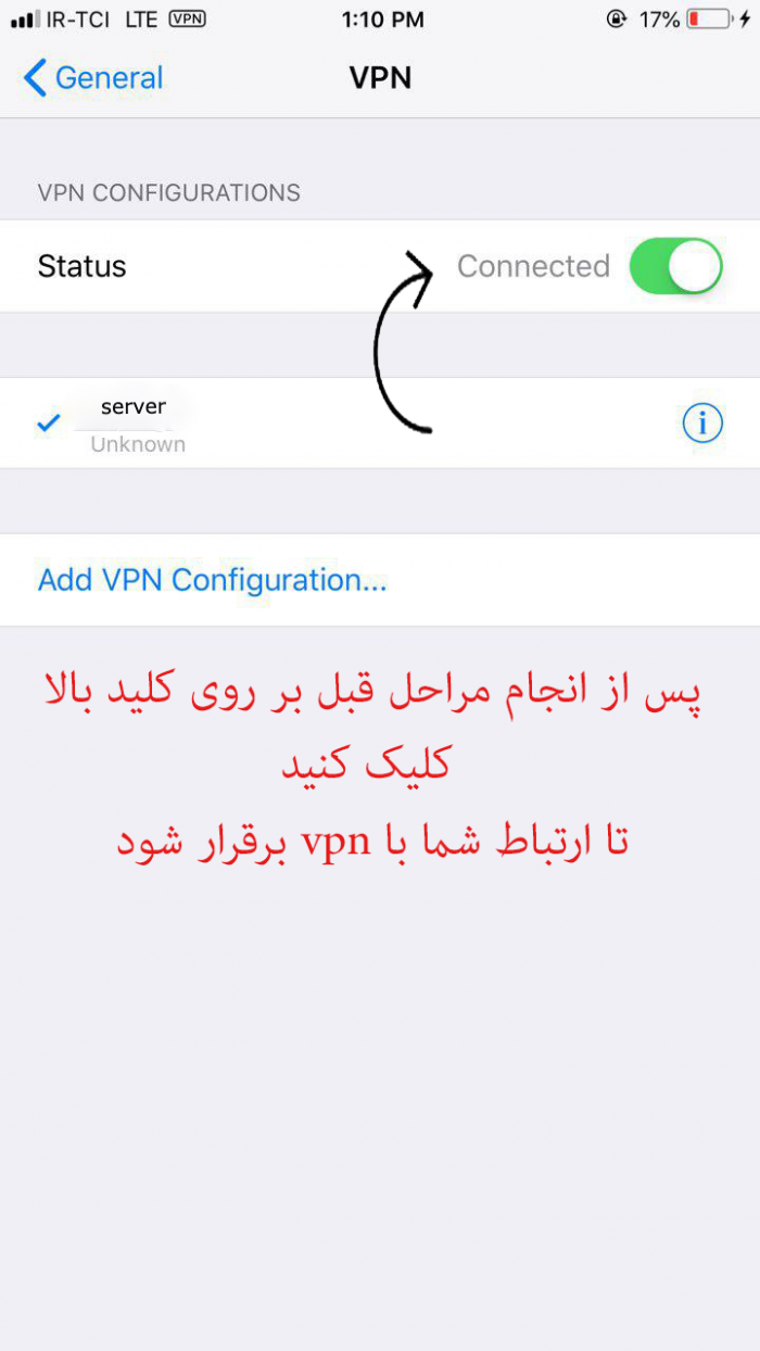 پس از مراحل بالا بر روی کلید cennceted کلیک کنید تا به وی پی ان وصل شوید