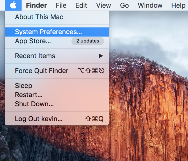1- از منو اصلی اپل System Preferences را انتخاب می کنیم که صفحه تنظیمات باز شود.