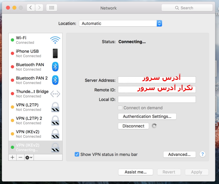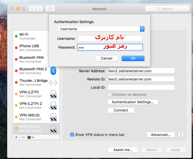 آموزش استفاده از سرویس IKEv2 در MAC OS