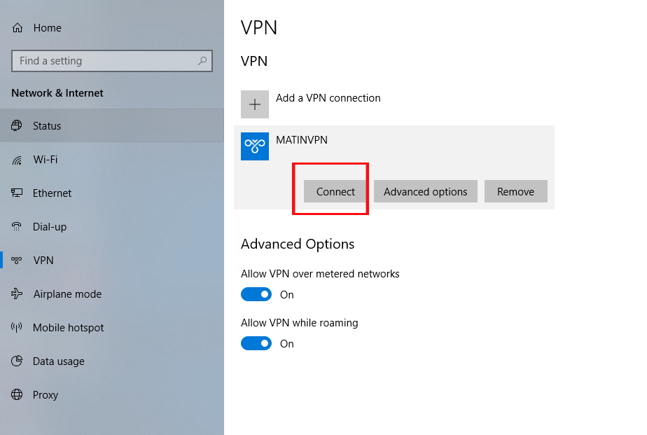 4- و بعد Add a VPN Connections کلیک میکنیم